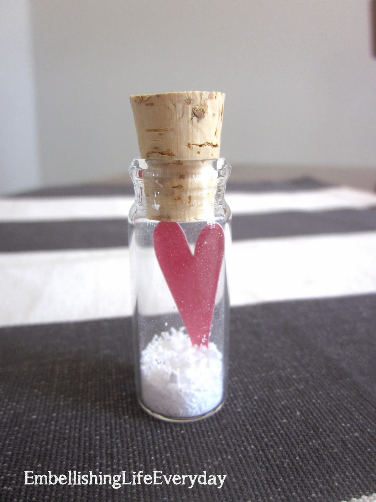 A mini vial with Epsom salt and a paper heart.